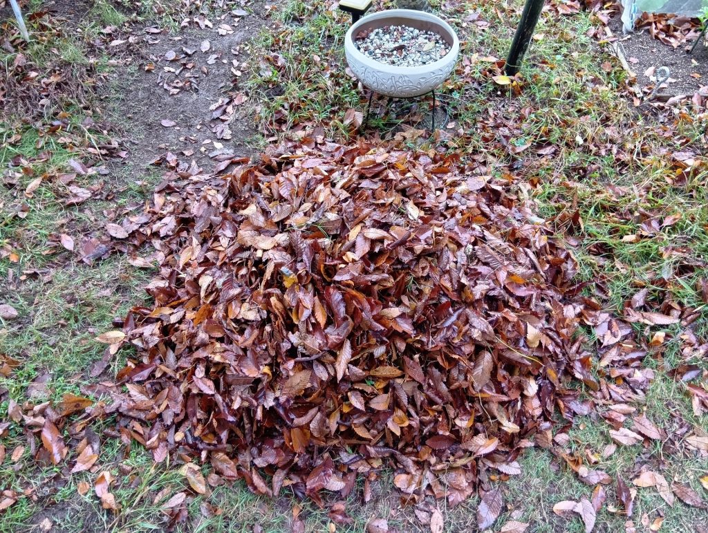 落ち葉 落葉が始まってきたので少し集めました。これからこの何倍も落葉が始まりますが、堆肥にする予定です。堆肥にして畑にすき込み土壌改良します。このような事を何年も繰り返しやってきたせいか作物を作りやすくなってきました。単純な事ですが、とても大事な事のような気がします。